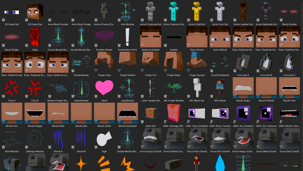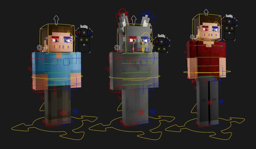 Endertainer Rig is a character rig for Blender designed with a focus on simplicity and customization. Originally created as a Minecraft character rig preset, it has since evolved into a comprehensive library of assets, including rig modules, cosmetics, shaders, and more.